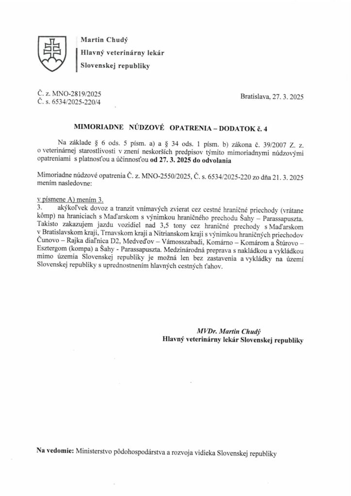 Mimoriadne núdzové opatrenia – Dodatok č. 4