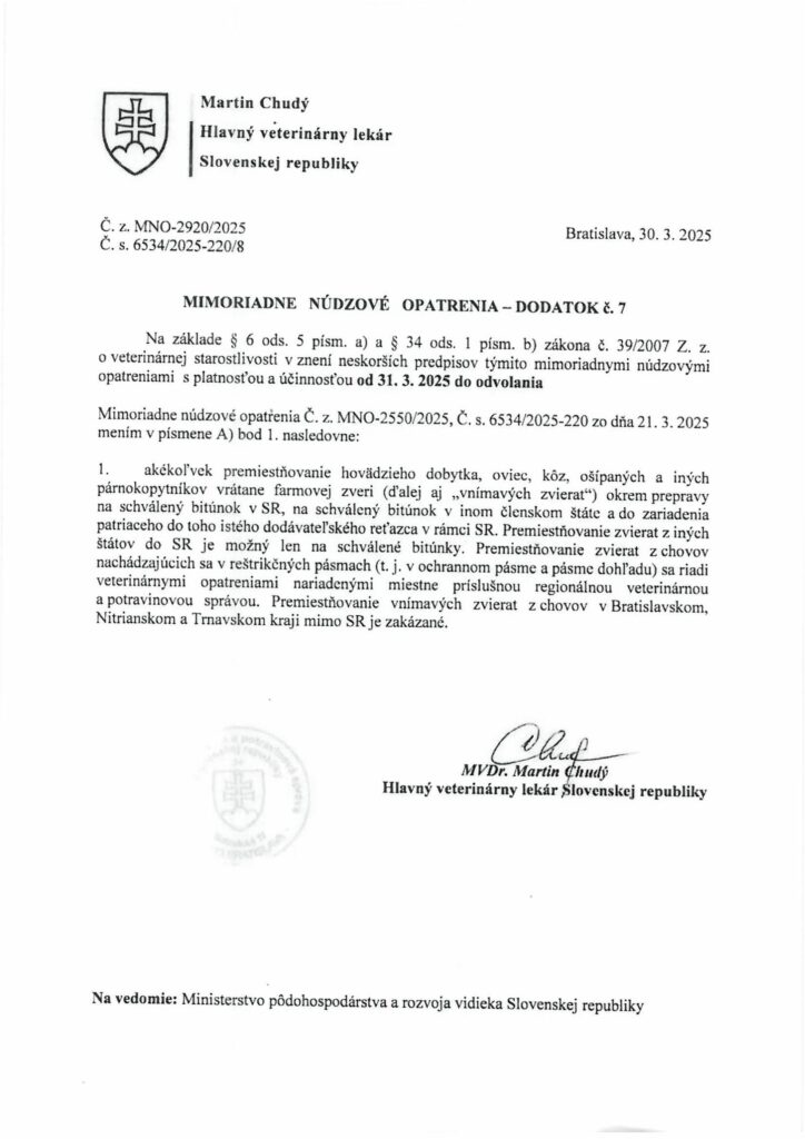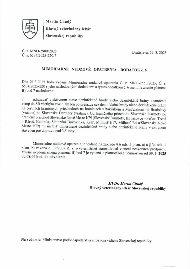 Mimoriadne núdzové opatrenia – Dodatok č. 6-7