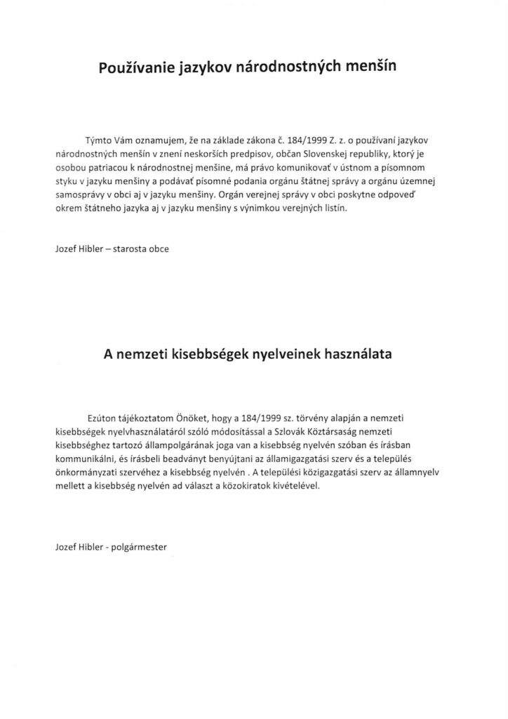 Používanie jazykov národnostných menšín – A nemzeti kisebbségek nyelveinek használata