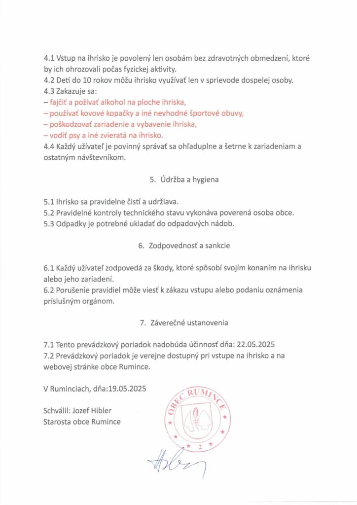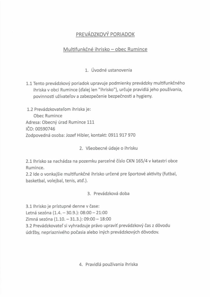 Prevádzkový poriadok_Multifunkčné ihrisko_Obec Rumince