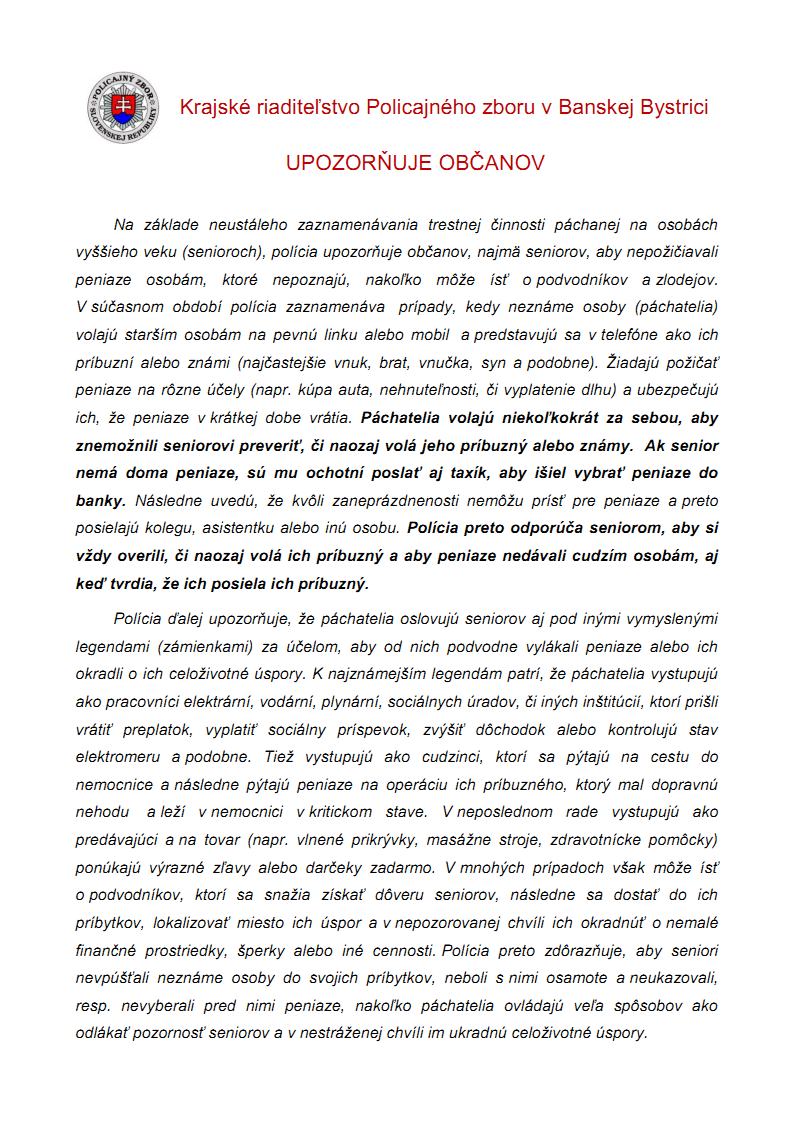 Upozornenie pre seniorov