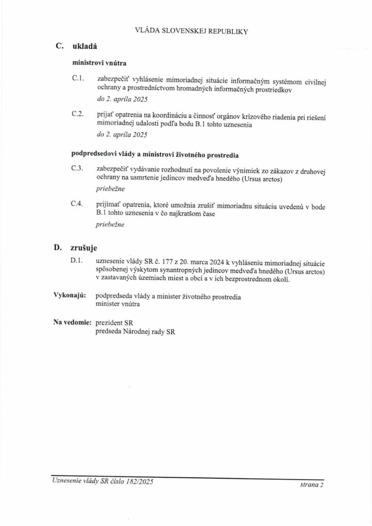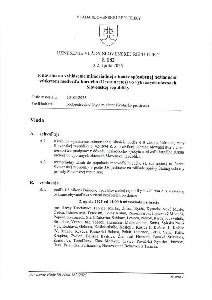UZNESENIE VLÁDY SLOVENSKEJ REPUBLIKY