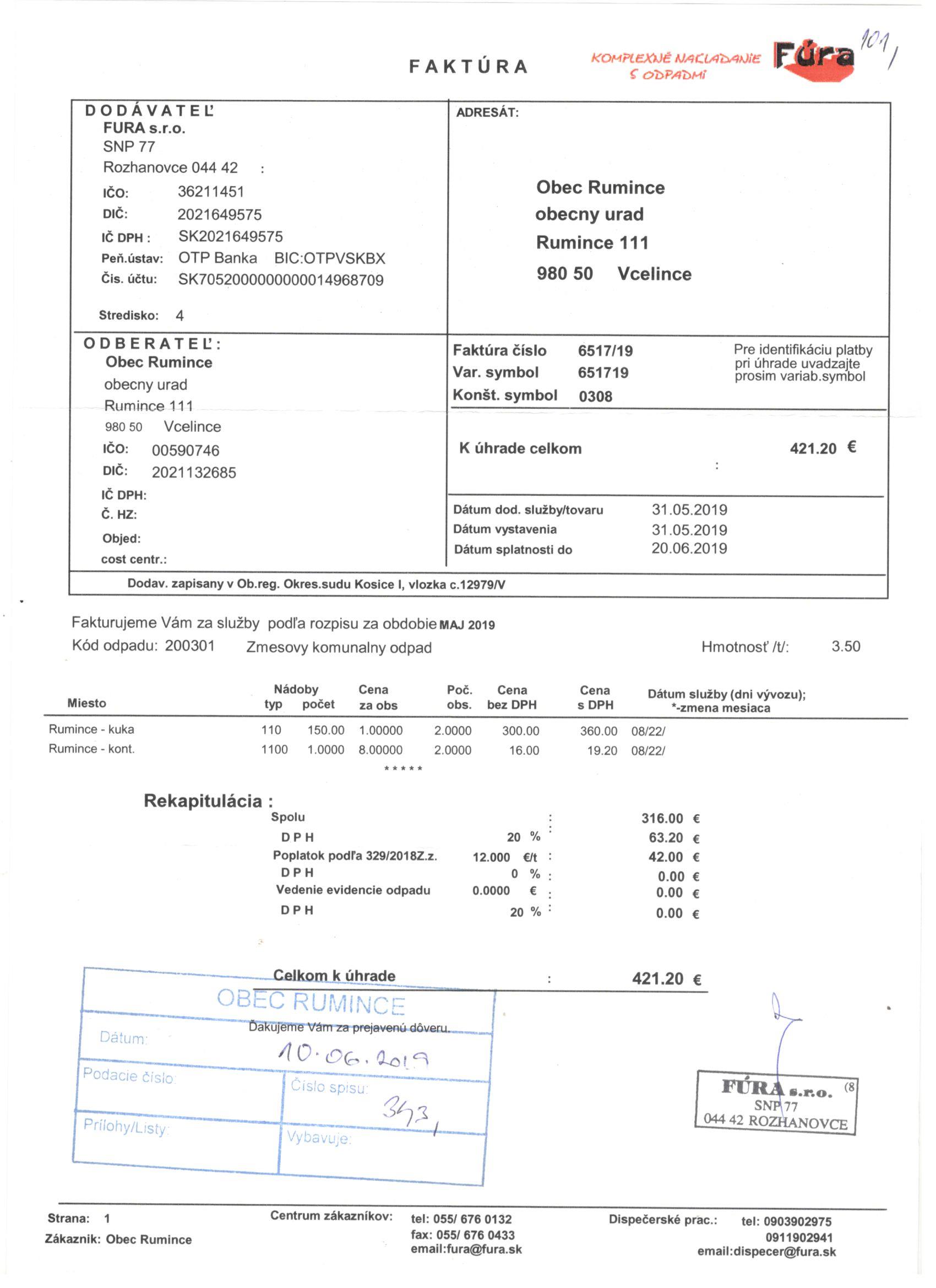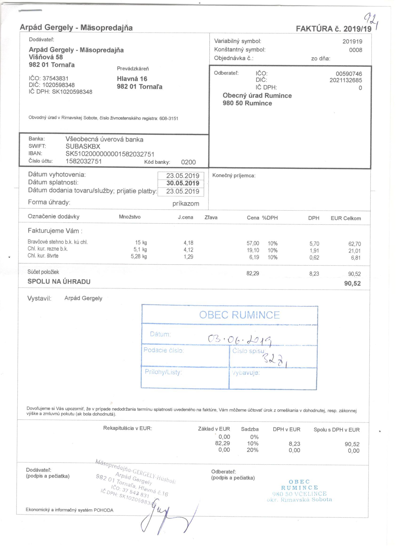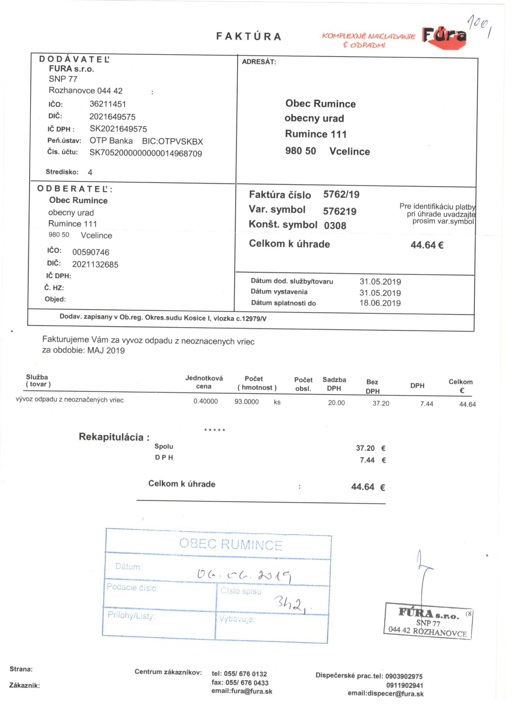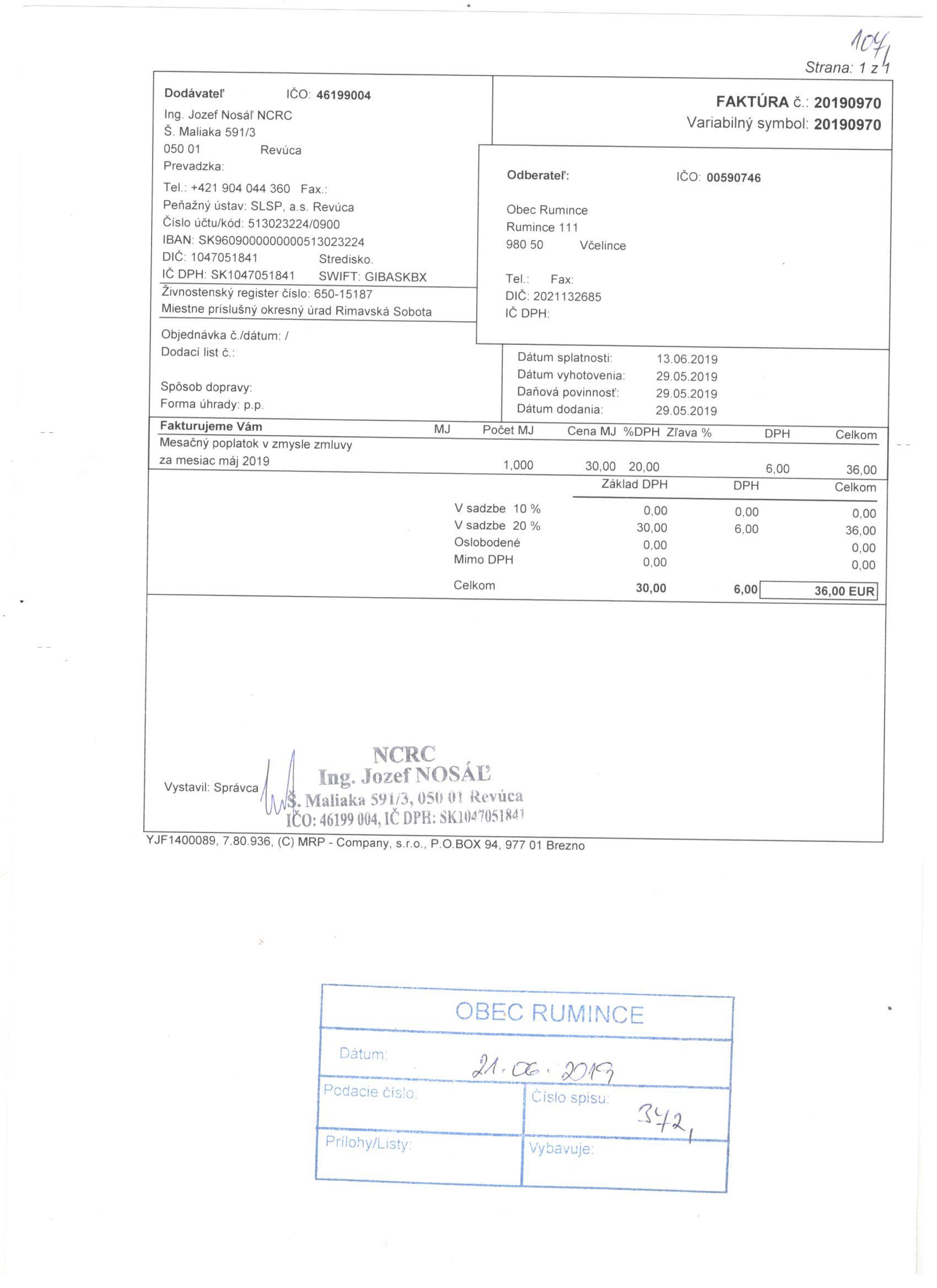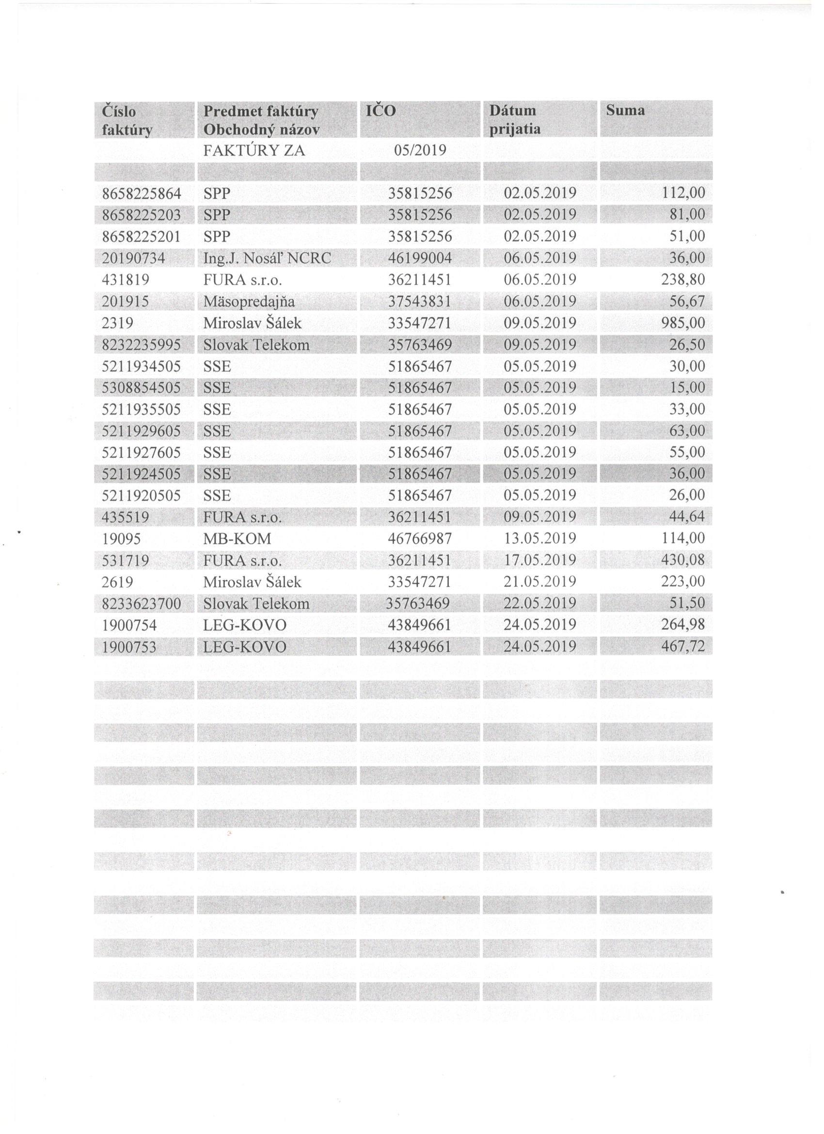 Sumár faktúr za 05/2019 |
