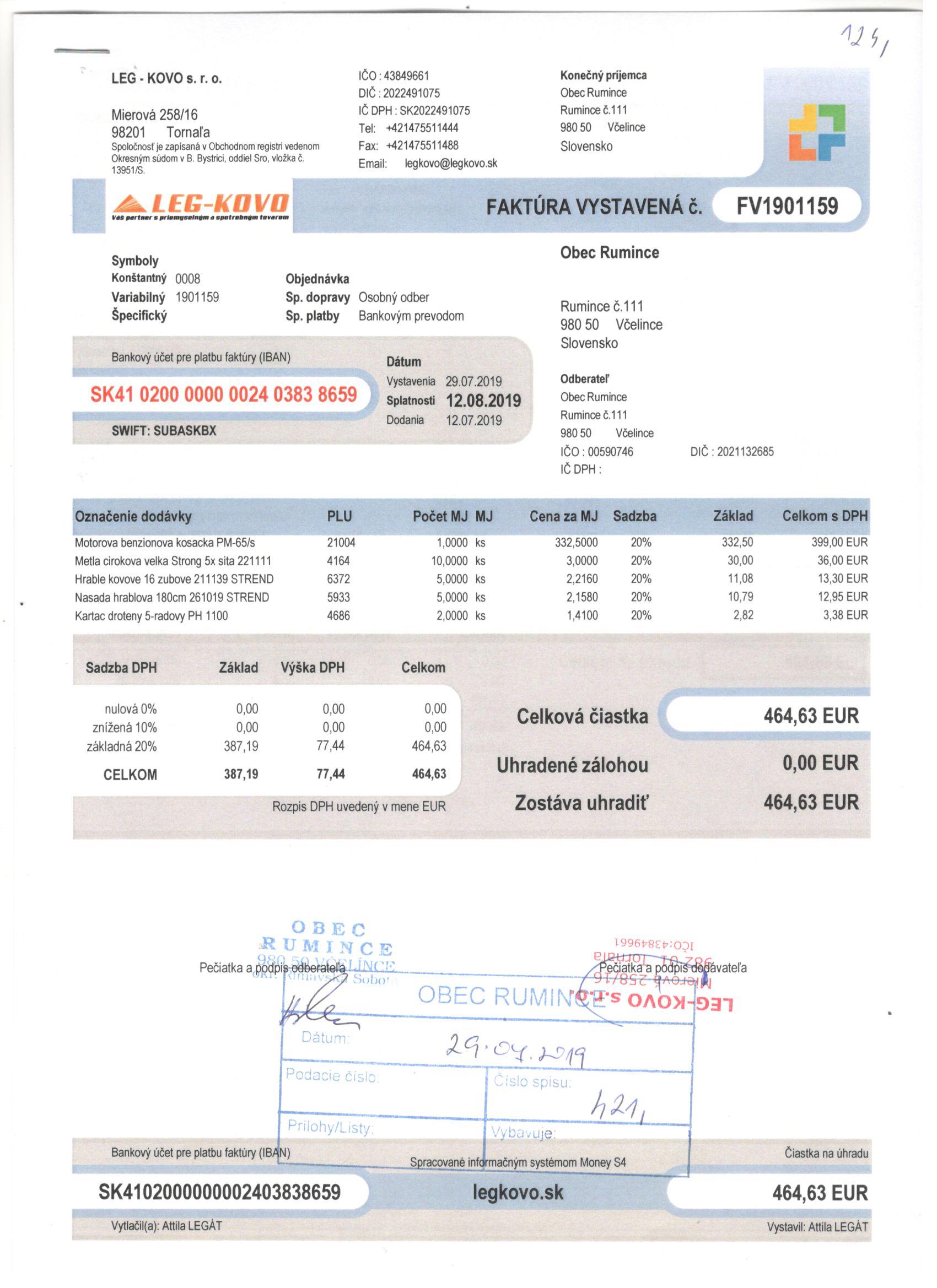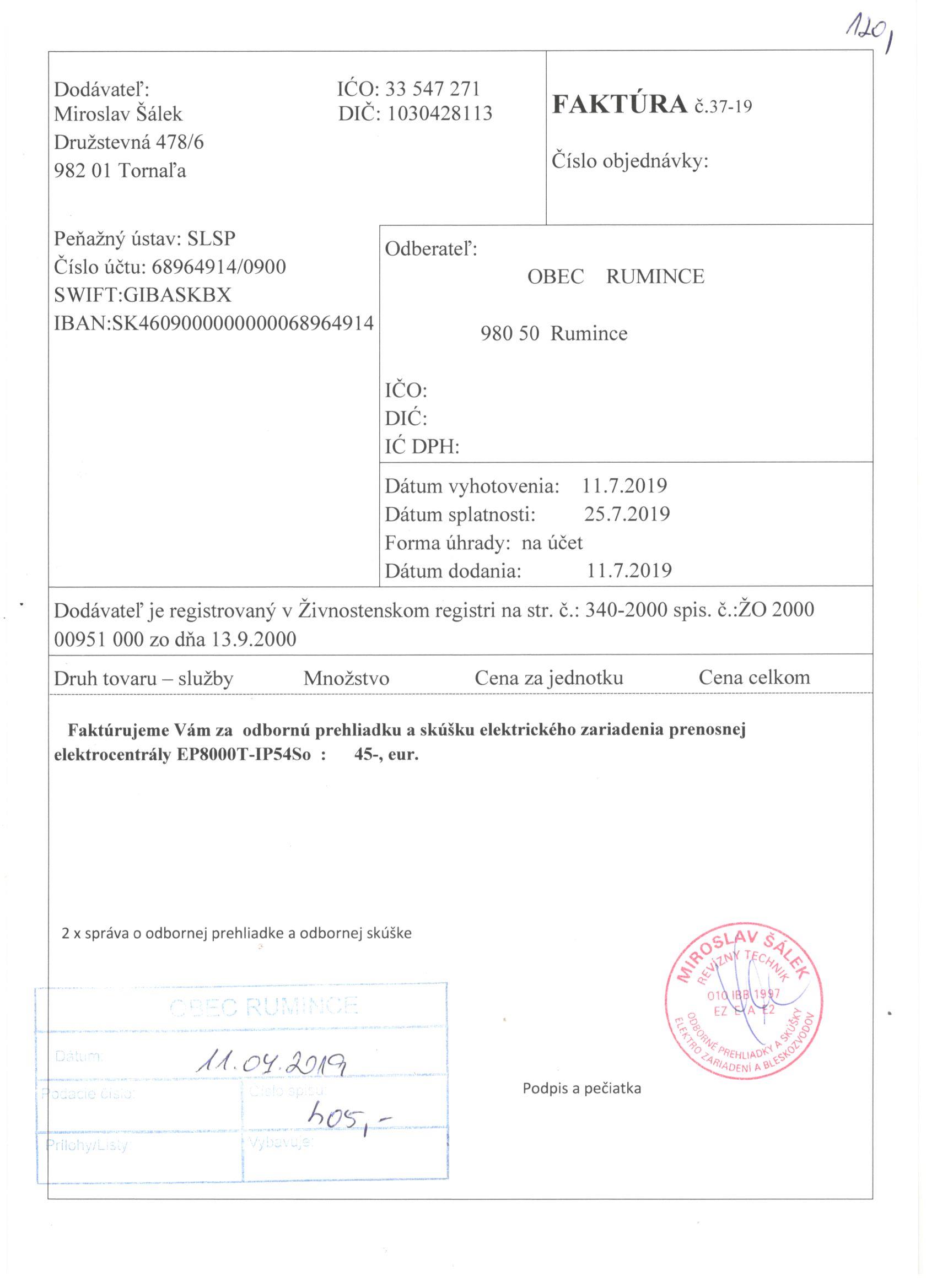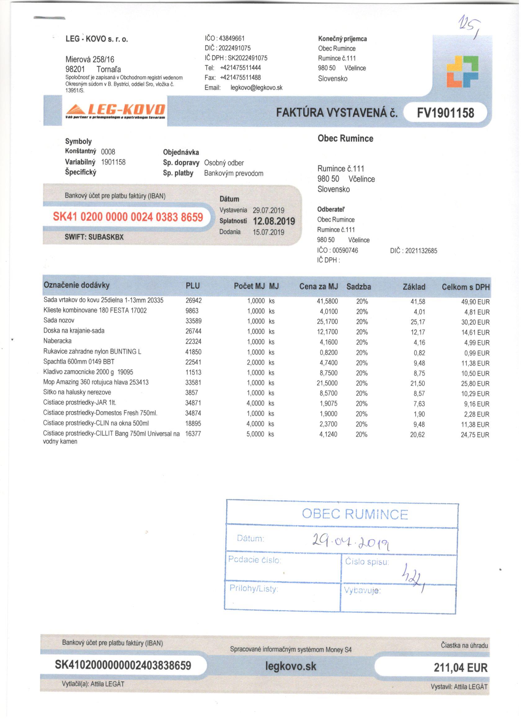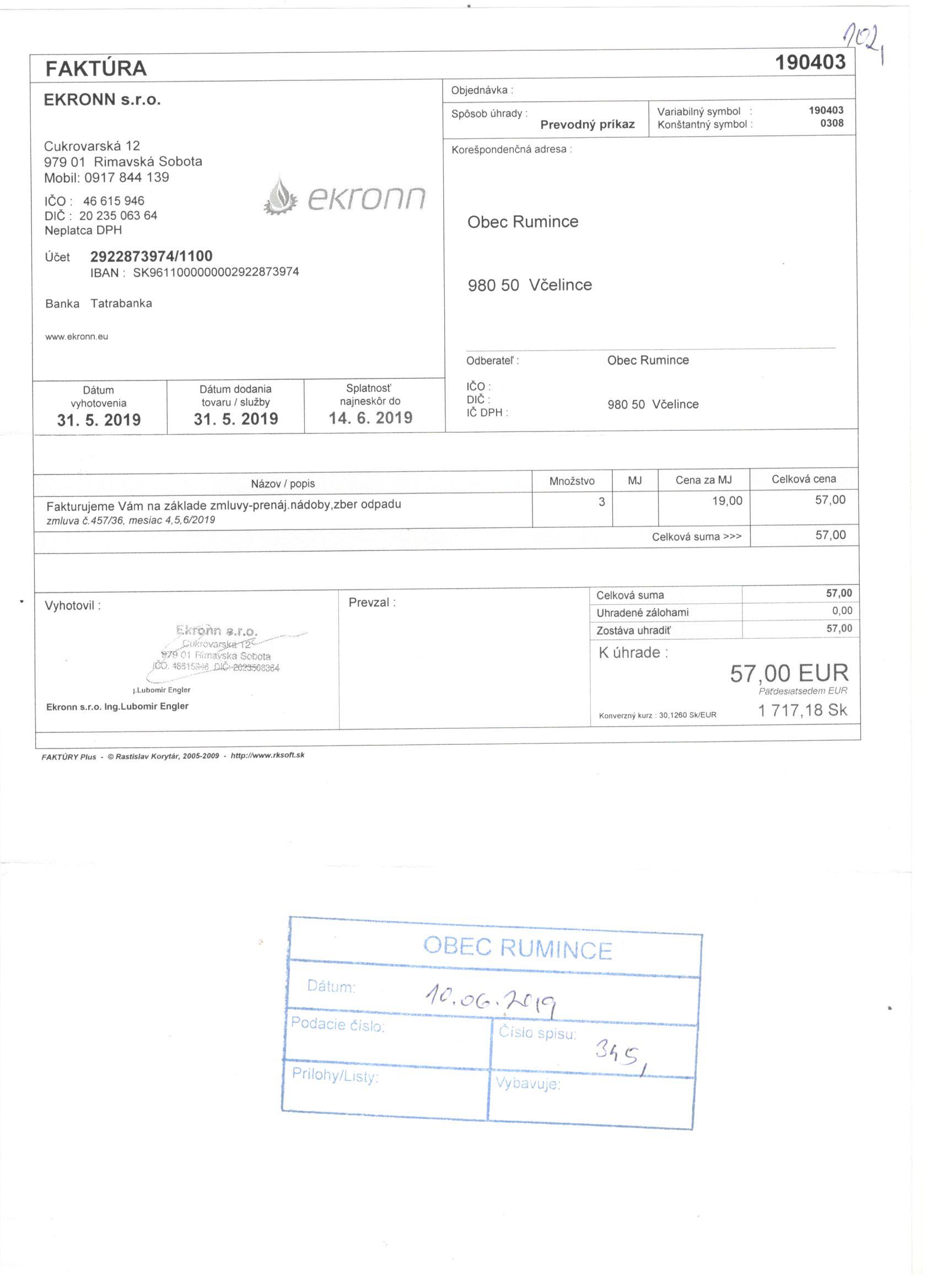 Sumár faktúr za 05/2019 |