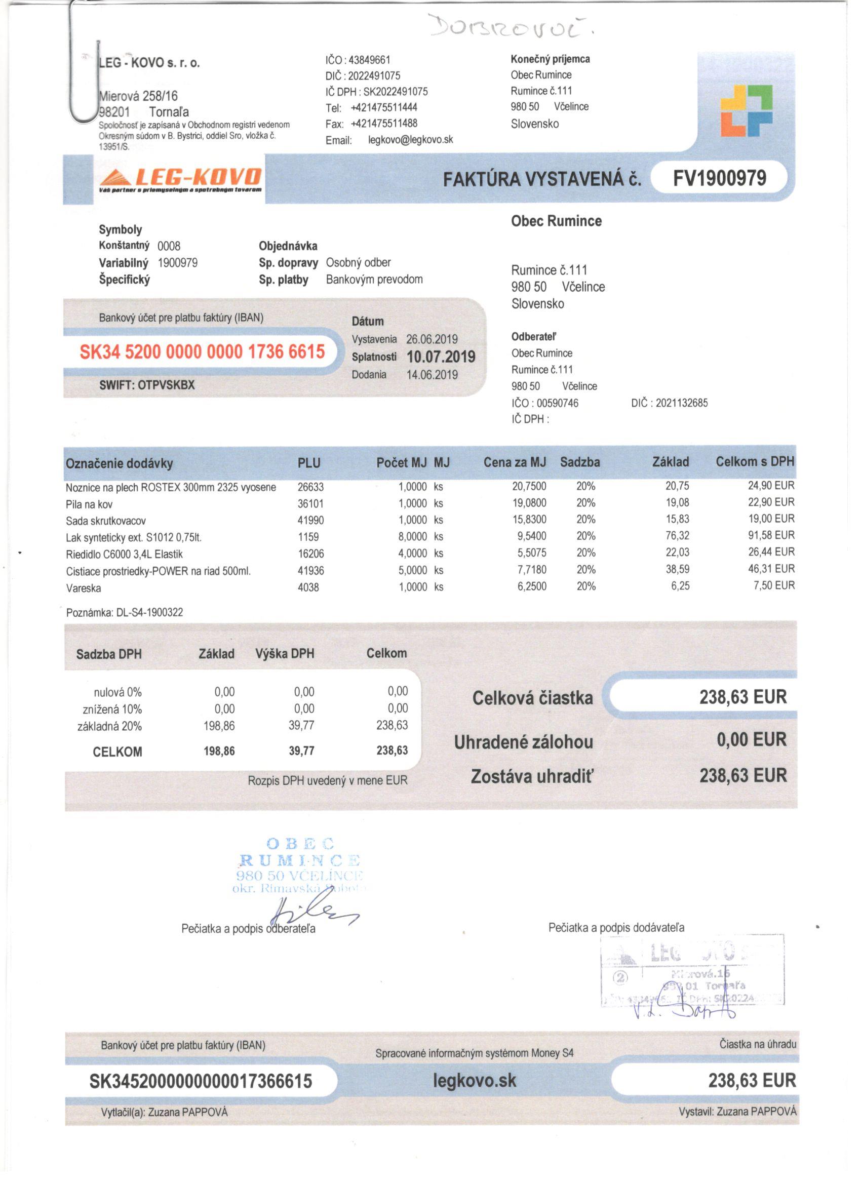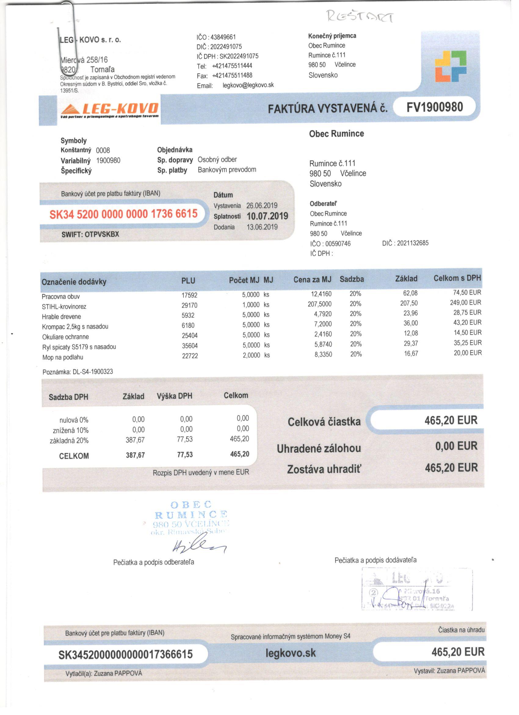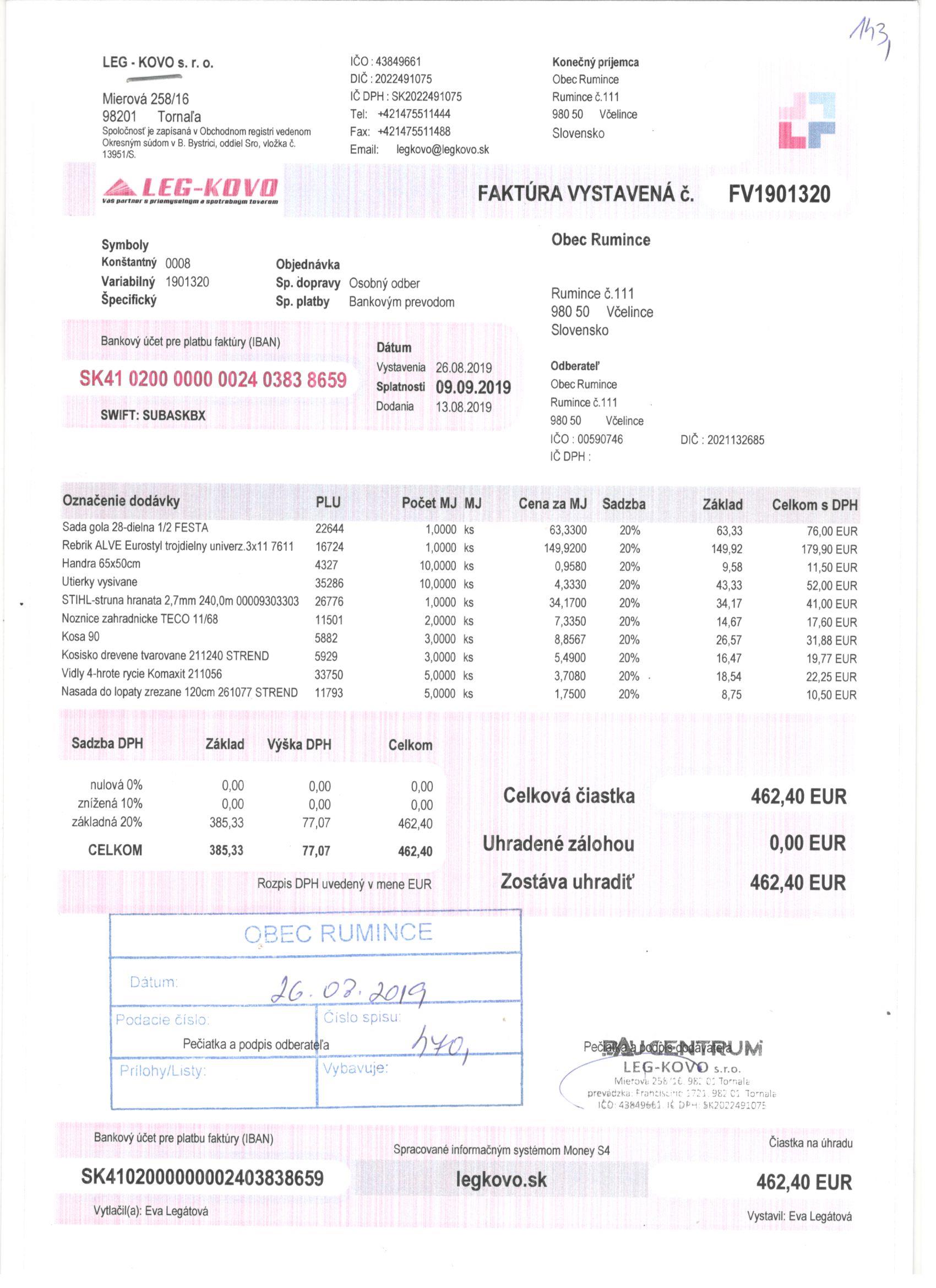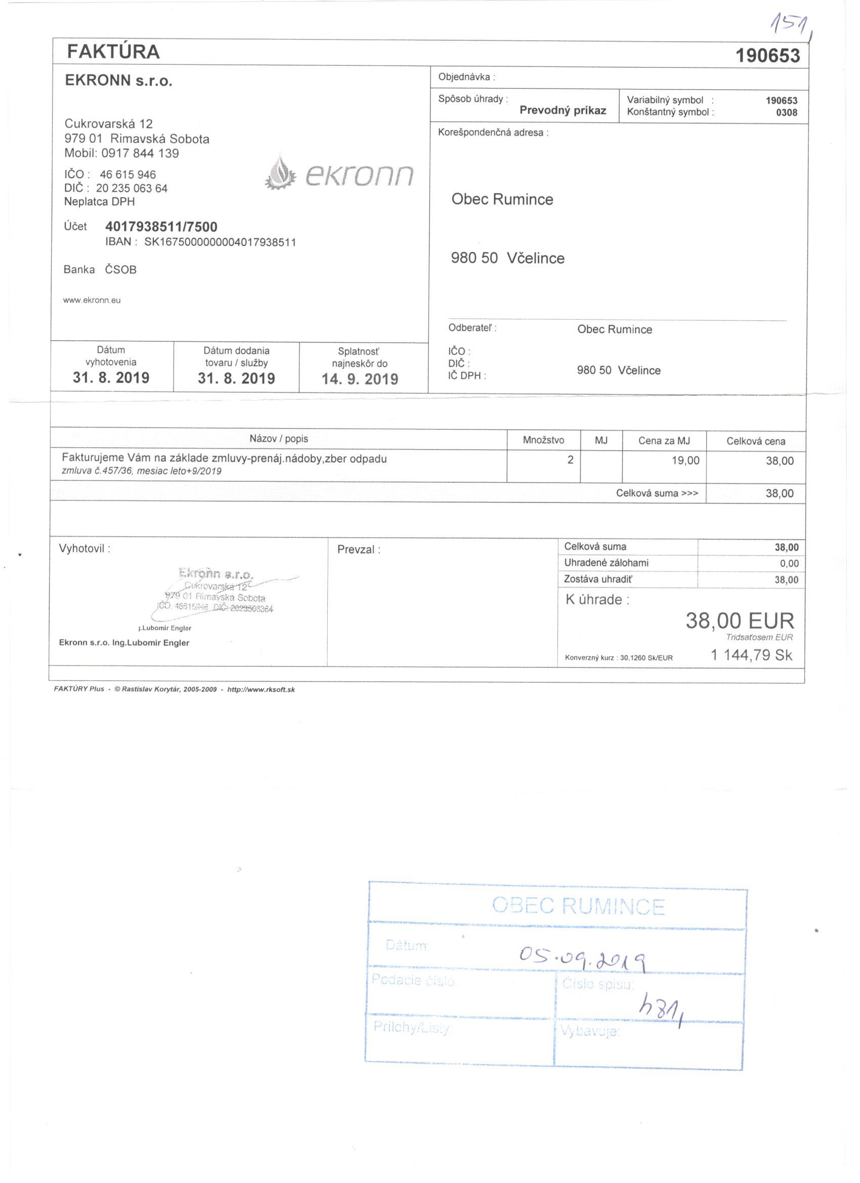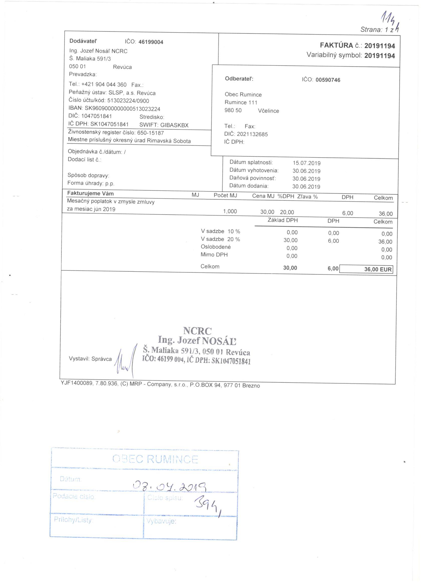 Sumár faktúr za 05/2019 |