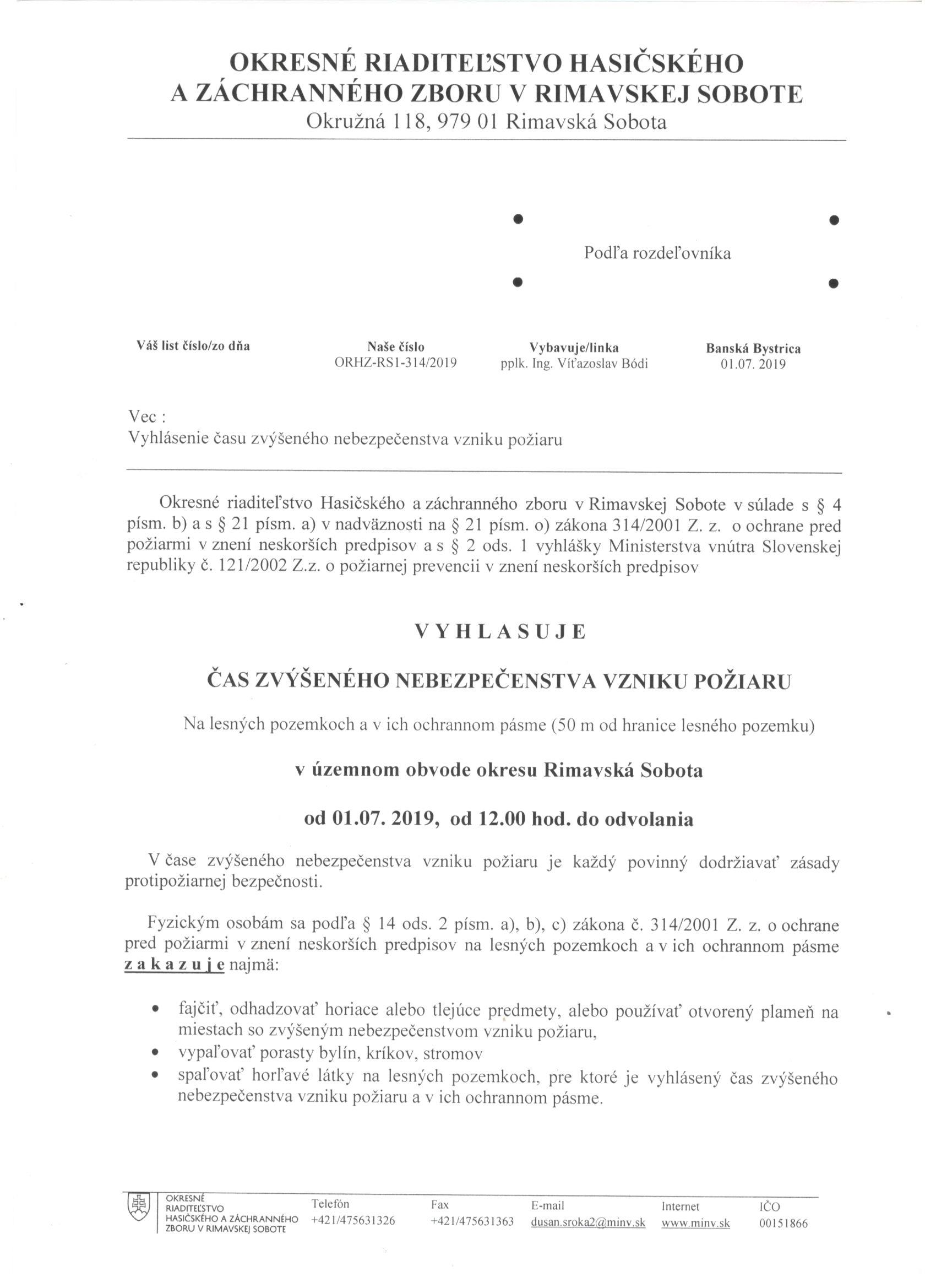 Zvýšené riziko vzniku požiarov! |